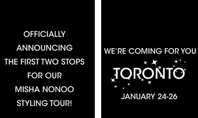وبالإضافة إلى منشورها المحير، أعلنت ميشا أنها ستطلق جولة أزياء في تورنتو من 24 لـ 26 يناير، وواشنطن في يوم 31 يناير، مما أشعل فتيل التكهنات بشأن أنها قد تتعاون مع ميغان، خاصة أن ميغان تعيش حاليًا في كندا، وهي أولى محطات جولة ميشا.