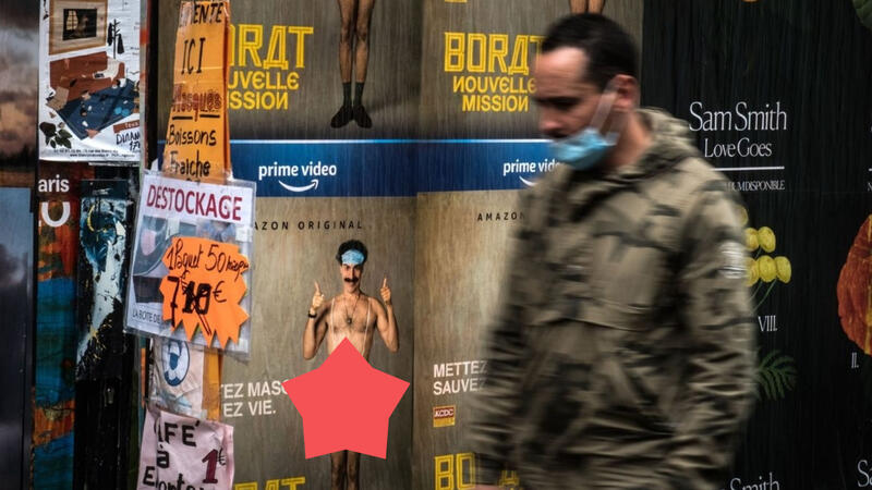 أثارت الملصقات الدعائية لفيلم Borat الجديد غضب رواد مواقع التواصل الاجتماعي ودعوا إلى إزالتها عن الحافلات الفرنسية بعد تضمنها رمزًا دينيًا للدين الإسلامي.