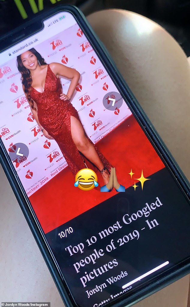 وتفاخرت "جوردن" بالإنجاز الذي حققته، ونشرت المقالة عبر خاصية "إنستغرام ستوري" مُرفقةً بإيموجي يضحك ويدين تصليان.