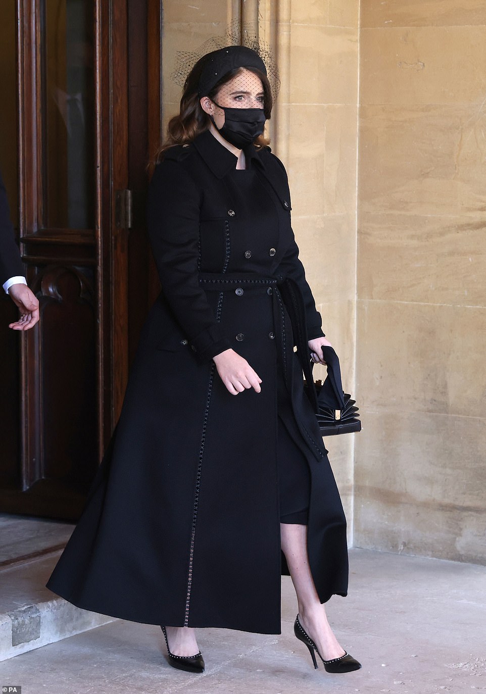 أما الأميرة يوجيني وهي ابنة الأمير أندرو فقد ارتدت فستاناً أسود بقيمة 5690 جنيه أسترليني من مجموعة AW20 لحضور الجنازة، كما حملت حقيبة يُعتقد أنها للأميرة ديانا من مجموعة Gabriela Hearst.