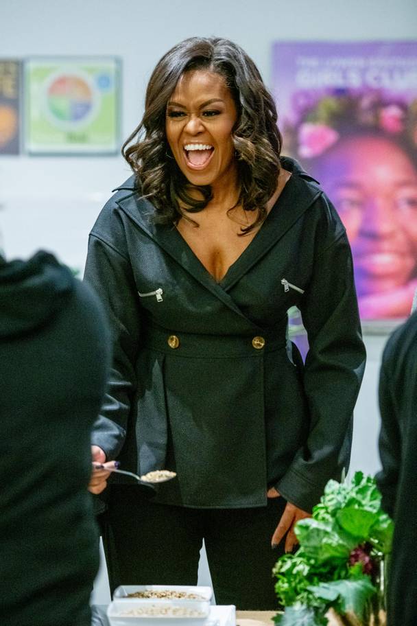 في 1 ديسمبر الماضي، وأثناء زيارتها مركز Lower Eastside Girls Club في نيويورك، بدت ميشيل في غاية العصرية والجاذبية في إطلالة كاملة من الأسود، تألفت من جاكيت مميز أبرز رشاقة خصرها، بالإضافة إلى ينطلون ضيق وبوت أنيق.