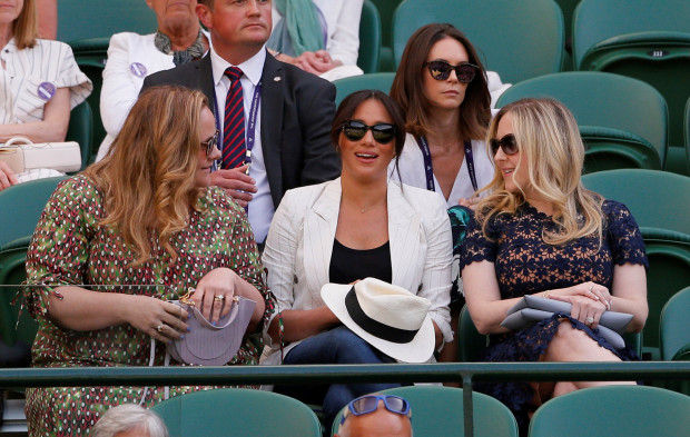 جلست الممثلة الأمريكية السابقة برفقة صديقتيها "ليندسي روث" و"جينيفيف هيليس"، والتي يعتقد أنهما ستختاران كعرابتين للطفل الملكي "آرتشي"، على المدرجات يهتفن ويشجعت "سيرينا" ضد منافستها "كاجا جوفان".