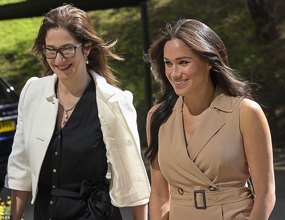 ورحّبت سوزانا جلافان بميغان لحظة وصولها وهي تلوّح للجماهير بينما كانت الريح تحرك شعرها وفستانها الذي جاء باللون البيج من مجموعة  Banana Republic بقيمة 95 جنيه إسترليني، ثم التقت البروفيسور ماروالا رئيس الجامعة.