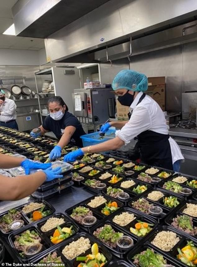 ونشرت المنظمة مجموعة صور لدوقي ساسكس وهما يخبزان ويعدان الطعام عبر حسابهما الرسمي على موقع "إنستغرام"، إذ تظهر "ميغان" مُرتدية قميصًا أبيض بسيطًا ومئزرًا أسود بالإضافة إلى قناع واقٍ أسود ومشبك للرأس، في حين تزيَّنت بمجموعة من الأساور الذهبية. من جهة أخرى، اختار "هاري" التنسيق مع إطلالة زوجته وارتدى قميصًا أبيض.