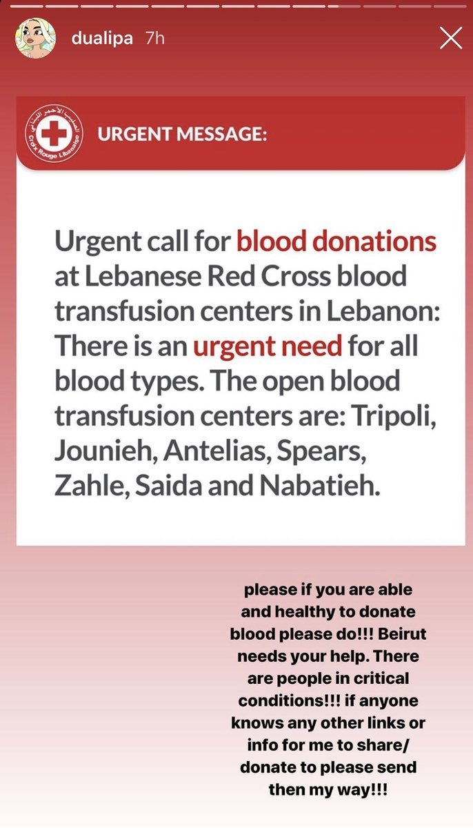 طلبت المغنية البريطانية ذات الأصول الألبانية من متابعيها إرسال أي منشور أو رابط يدعوا إلى التضامن مع الشعب اللبناني، وحثَّت متابعيها في لبنان على التبرع بدمهم للجرحى المتواجدين في المستشفيات.