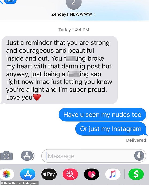 أرسلت الممثلة الحسناء "زيندايا" بدورها رسالة لمواساتها في محنتها، جاء فيها: "تذكري فقط أنك قوية، ورائعة، وجميلة من الداخل والخارج.. لقد حطمت قلبي بمنشورك.. أوَّد إخبارك أنك وهج وأنا فخورة بك.. أحبك."