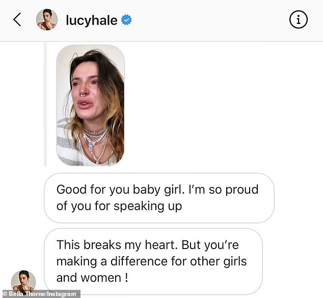 علَّقت الممثلة والمغنية الأمريكية على الفيديو الذي نشرته "بيلا" وهي تبكي، وكتبت: "هنيئًا لك طفلتي، فخورة لأنك تحدث عن الموضوع..هذا حطَّم فؤادي، لكنك تصنعين الفرق في حياة الفتيات والسيدات."