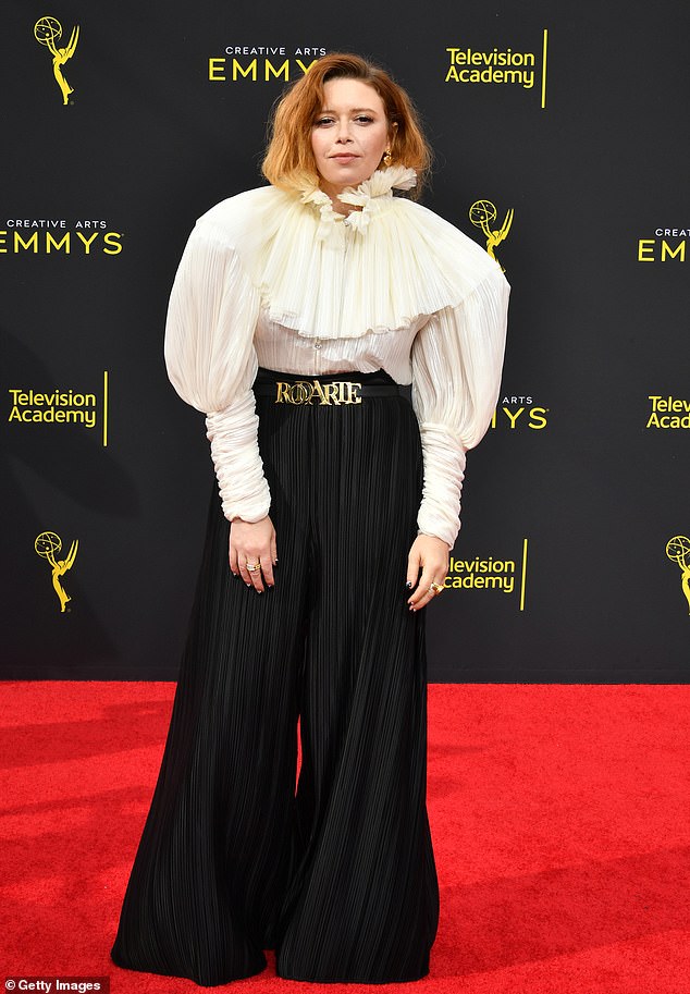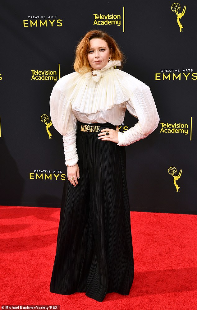 وارتدت ناتاشا قميص أبيض بكشاكش ضخمة من عند الكتف وياقة مطابقة مستوحى من عصر شكسبير من مجموعة  Rodarte نسّقته مع بنطال أسود عريض ذو خصر عال ومزيّن بكسرات متعددة.