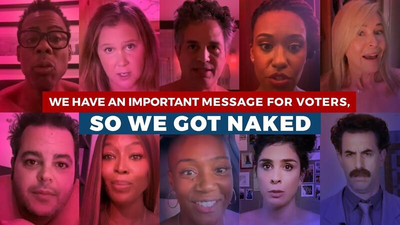 قرر النجوم والممثلين العالميين التجرد من ملابسهم يوم أمس الأربعاء من أجل تشجيع الناخبين على اتباع تعليمات التصويت بالبريد الإلكتروني.