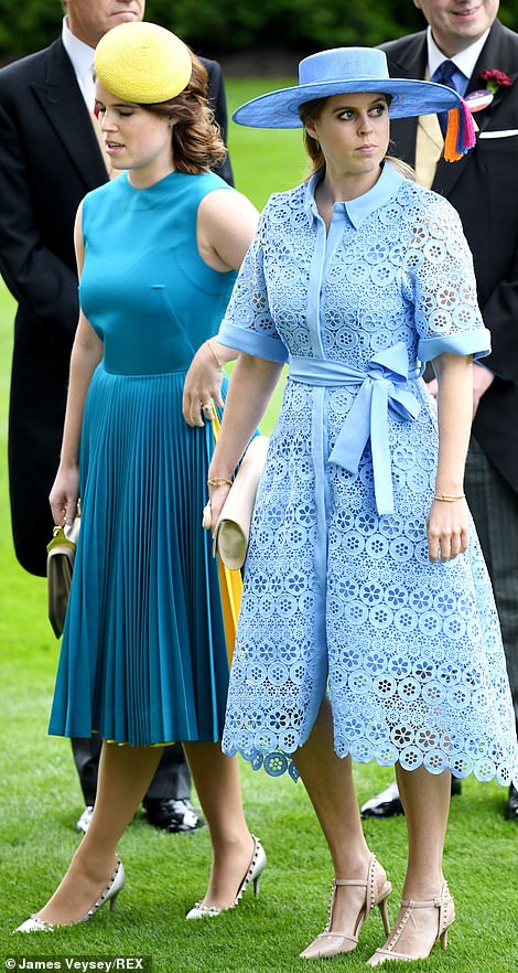 أما الأميرتان يوجين وبياتريس فقد كانتا متألقتين، إذ ارتدت يوجين فستان من الدانتيل الأزرق، بينما ظهرت بياتريس بفستان بسيط ينتهي بتنورة مزيّنة بالكسرات، إلا أنها الوحيدة التي لم ترتدي قبعة زرقاء منهم، بل صفراء.