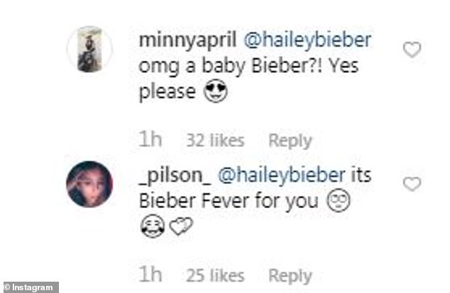 وعلى الرغم من هذا، ردّت هايلي على الشائعات بنفيها، حيث قالت: "مجرّد الإعجاب بابنة صديقتي الجميلة، هذا لا يعني أنني سأنجب طفلاً في الوقت القريب"، كما أصرّ جاستين على أن منشوره عن طفله المستقبلي لم يكن إعلان حمل، ولا يلّمح إلى أي شيء قريباً.