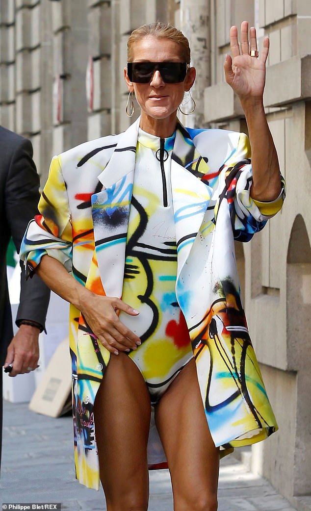 وعلى ما يبدو أن جولتها الغنائية والترويج لأغانيها دفعها إلى العودة لشبابها بأزياء حيوية وملفتة، فقد شوهدت سيلين وهي ترتدي ليوتارد مُشابه لملابس السباحة من قطعة بنقشة الغرافيتي، كما نسّقت معه بليزر مطابق، وصندلًا غريب التصميم باللونين الأسود والأزرق، بالإضافة إلى اعتمادها تسريحة الكعكة المنخفضة.