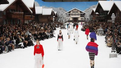وتميز عرض دار الأزياء الفرنسية بديكور يخطف الأنفاس وسط الثلوج، من وحي جبال الألب، حيث اختارت شانيل إقامة العرض في "القصر الكبير" Grand Palais.