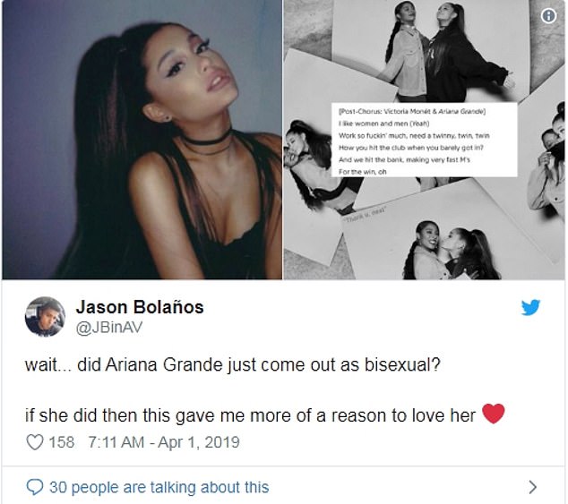 وأعرب العديد من معجبي النجمة عن إعجابهم بدفاع "آريانا" عن حقوق المثليين الجنسيين، وكتب أحدهم: "انتظروا.. هل خرجت آريانا كثنائية الجنس. إذا ما كان الأمر حقيقيًا، فهي تمنحني سببًا آخر لأقع في حبها."