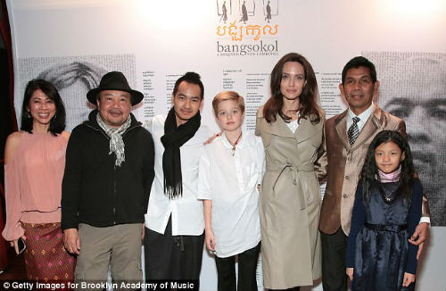 والتقطت "جولي" صورة جماعية مع كل من الناشطة في الدفاع عن حقوق الإنسان "لونغ أونغ" وهي كاتبة رواية They Killed My Father والتي اقتبست منها قصة فيلم "جولي" الأخير الذي يحمل نفس الأسم، ومنتج الفيلم المخرج الكمبودي "ريثي بانه".