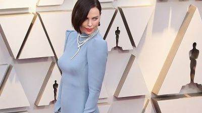 جذبت النجمة تشارليز ثيرون الأنظار إليها في حفل توزيع جوائز الأوسكار بنسخته الـ 91، والذي أقيم في مسرح دولبي الواقع بلوس أنجلوس، حيث اختارت ثيرون فستانًا أزرق اللون بدرجة فاتحة، وبتصميمٍ بسيط وراقي، جاء مفتوحًا بشكل طولي من ناحية الظهر، اختارته النّجمة من علامة ديور الفرنسية، كما أظهرت الممثلة البالغة من العمر 43 عامًا شخصية قوية بالأزرق البارد، وتسريحة شعر الأسود القصير.
