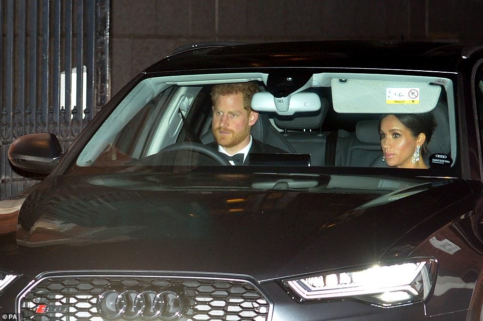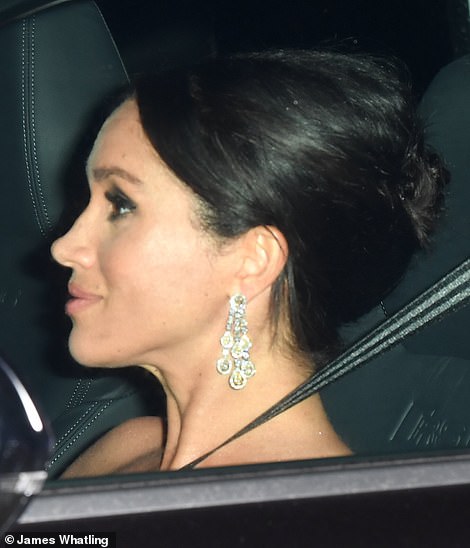 من جهة أخرى، لم يكن واضحًا ما ارتدته دوقة "ميغان ماركل" في الحفل، فإما ارتدت فستان أوف شولدر أو سترابلس، في حين تزيَّنت بأقراط ألماسية طويلة مُتفرعة إلى ثلاثة خطوط كانت قد تألَّقت بها خلال جولتها إلى استراليا الشهر الماضي.