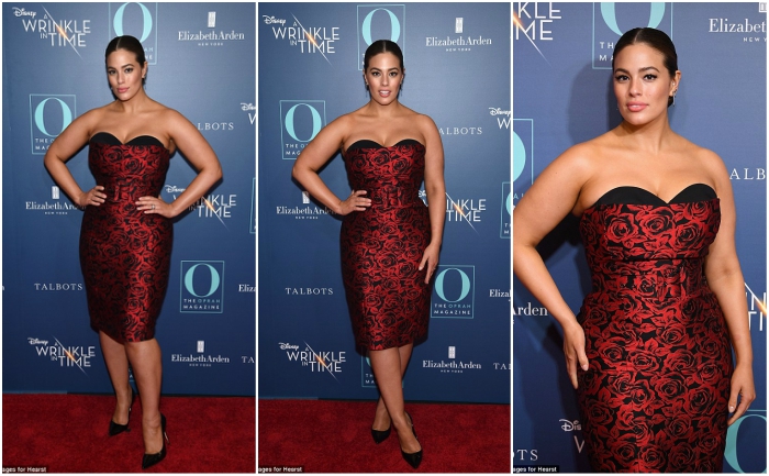 تألقت "آشلي غراهام"، البالغة من العمر 30 عامًا، مرتديةً فستان سترابلس أنيق أسود مزيَّن بطبعات على شكل ورود جورية حمراء، وذلك خلال عرض فيلم ديزني "A Wrinkle In Time" الذي أقامته مجلة The O Magazine في مدينة نيويورك يوم الأربعاء الماضي.