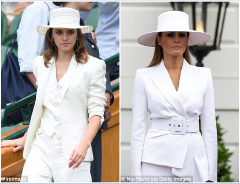 لم تكن إطلالة واتسون بالغريبة أو الجديدة، إذ شاهدناها مُسبقاً على سيدة أمريكا الأولى ميلانيا ترامب، عندما ارتدت بدلة مُشابهة في شهر أبريل الماضي، وذلك أثناء زيارتها الرسمية للقاء الرئيس الفرنسي وزوجته.