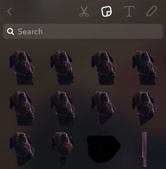 فهناك أداة جديدة أضافتها شركة سناب شات في أواخر العام الماضي، ألا وهي "أداة المقص" التي تعمل على ابتكار ملصق "ستيكر" من تصميمك. كل ما عليك فعله هو أن تلتقط صورة، ومن ثمّ اضغط على علامة المقص الموجوة في أعى الشاشة، ثمّ قم بتحديد المنطقة التي تريد جعلها "ستيكر" دائم في تطبيقك.