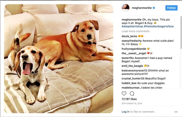 امتلكت "ميغان"، نجمة سلسلة الدراما التلفزيونية "Suits"، كلبين قبل زواجها الملكي هما "غي" و"بوغارت"، إلّا أن الأخير لم يتمكن من الانضمام إليها للعيش في القصر نظرًا لسنه الكبير ولذا تركته برفقة إحدى صديقاتها في كندا.