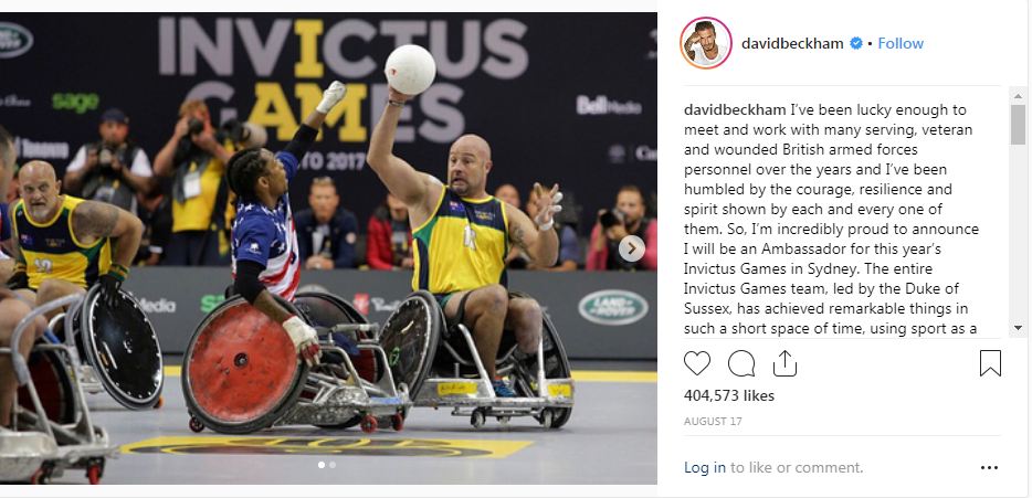 عبّر لاعب كُرة القدم العالمي عن سعادته بهذا المنصب الجديد، عبر صورةٍ نشرها على حسابه في إنستغرام، شكر فيها دوق ساسكس، والمُشاركين في البطولة، وهم المُحاربين القُدامى، وقدّم لهم التّحية على ما قدّموه لبلادهم.