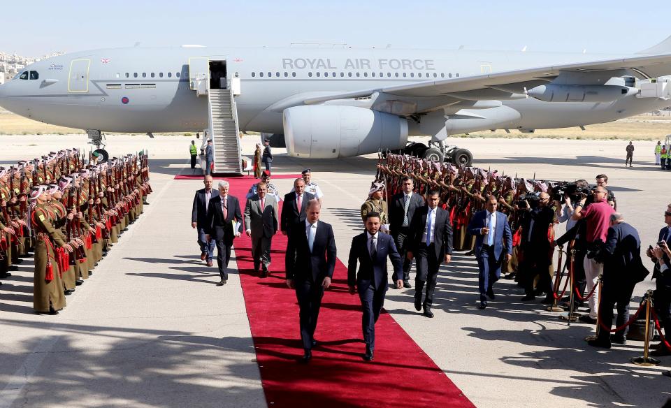 انضم دوق كامبريدج الأمير "ويليام" إلى جانب ولي العهد الأردني الأمير حسين بن عبد الله الثاني في القصر الملكي لمشاهدة مباراة منتخب إنجلترا "الأسود الثلاثة" ضد منتخب "بنما".