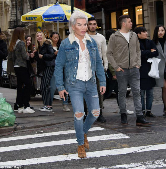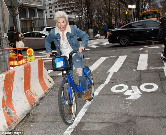 واختار "كين" أن يجوب شوارع نيويورك على دراجته بإطلالة Denim مؤلفة من جاكيت بقبة من الفرو الأبيض وبنطال جينز ممزق باللون أزرق، وقميص أبيض من الدانيتل الشفاف، واضعًا المشد (كورسيه) الذي اعتاد على الظهور به منذ أن خضع لعملية إزالة أربعة أضلع من قفصه الصدري بداية شهر يناير الجاري بهدف الحصول على خصر نحيل.