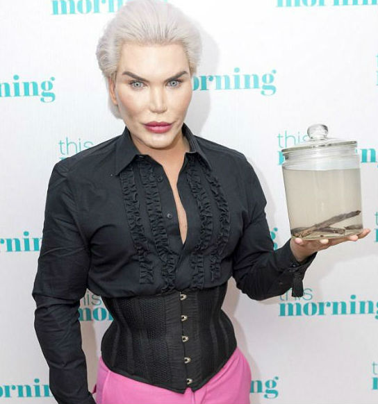 وحرص "كين" على استعراض خصره النحيل بعد أن دفع مبلغ 28 ألف جنيه إسترليني لإزالة أربعة أضلع من قفصه الصدري بداير شهر يناير الجاري وهي العملية رقم 60.
