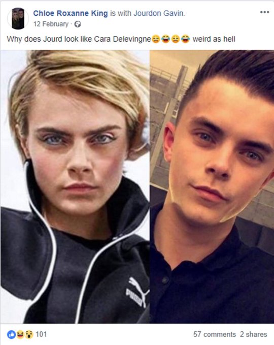 كما يقولون يخلق من الشبه أربعين، وهذا الحال كان بالنسبة لشخص يدعى " جوردن جافين" الذي اكتشف تشابه بشكل كبير مع عارضة الأزياء الشهيرة " كارا ديليفن" حتى أن تشابه وصل إلى درجة الإعتقاد بأنهم توأمين.