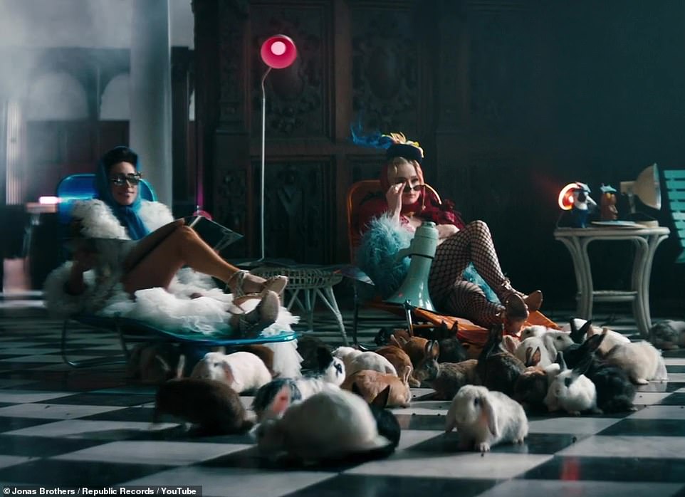 وبالإضافة إلى إطلالات الشريكات اللافتة والغريبة، ارتدى الإخوة جوناس إطلالات متنوعة مفعمة بالألوان أيضًا، وفي إحدى أجزاء الكليب، يظهر كيفن بزي مبارزة أحمر وسيف ويتبارز مع أحد أشقائه.