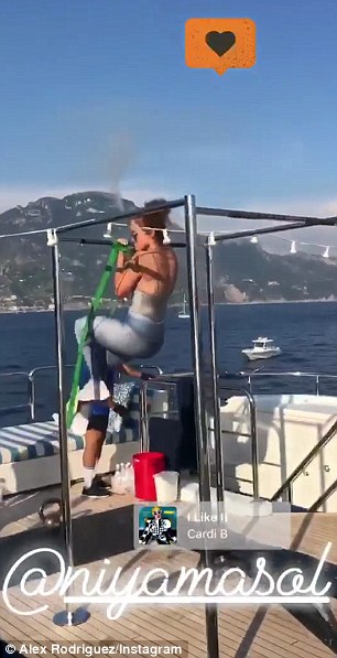 ففي أثناء تمضيتها يومٍ هادئ على متن يختٍ فاخر في عرض الأبيض المُتوسط، ارتدت لوبيز ملابس رياضية ضيّقة، وصعدت إلى سطح المركب من أجل مُمارسة تمارين الرّفع والضّغط.