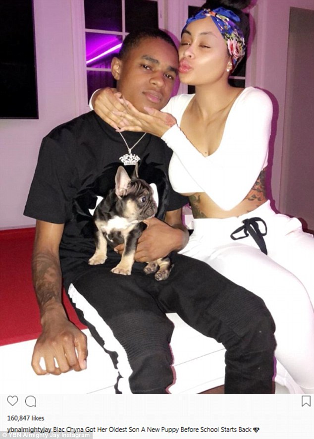 نشر مُغني الراب المُراهق YBN Almighty Jay صورة عبر حسابه في موقع إنستغرام، ظهر فيها وهو يجلس على أريكة حمراء، وجلس إلى جانبه حبيبته، راقصة التّعرّي بلاك شاينا، بينما كانت تُقبّله على خدّه، وقد جلس في حُضنه جرو أسود، يبدو أنّ شاينا أهدته إياه.