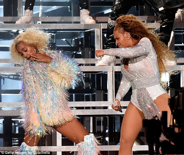 وفي الأداء الثاني لليوم، انضم إلى جانب "بيونسيه" كلًا من كيلي رولاند وميشيل وليامز اللتين شكلتا معها في التسعينيات فرقة "ديستينيز تشايلد" التي حققت نجاحا كبيرا على ساحة موسيقى "ار اند بي"، وتألقن ثلاثتهم بإطلالات فضيَّة لمَّاعة من تصميم مصمم الأزياء الفرنسي أوليفر روستينغ.