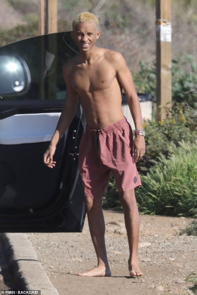 ظهر جادين نجل ويل وجادا سميث، والبالغ من العمر 20 عاماً، بمظهر المتشرد وهو يتمتع في نزهة صغيرة مع أصدقائه في لوس أنجلوس بعد ظهر الاثنين.