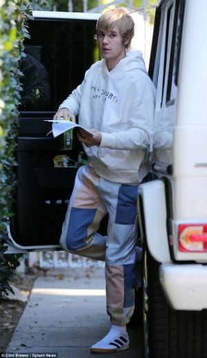 وبحسب الصور التي نشرها موقع TMZ ظهر "بيبر" بلوك كاجوال ببنطال رياضي مرقع بألوان متعددة، مع hoodie من Marc Jacobs باللون الأبيض، وأكمل إطلالته بـ Adidas sneakers.