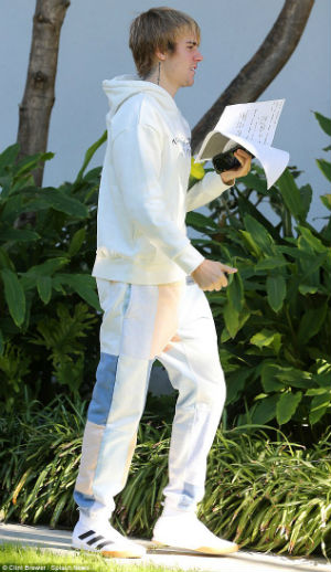 ورصدت عدسات مصوري الباباراتزي "بيبر" وهو يترجل من سيارتته بالقرب من ستوديو Nancy Banks في هوليوود أمس الأربعاء ممسكًا بيده مجموعة من الأوراق والملاحظات.
