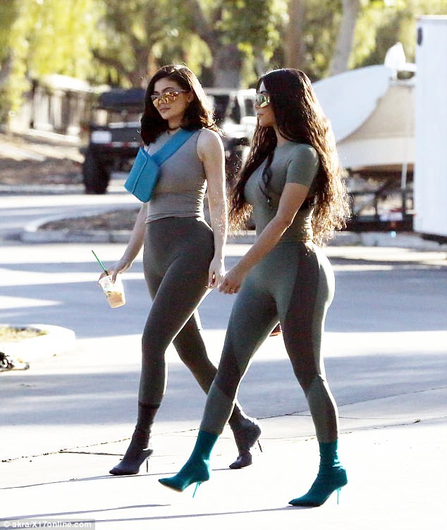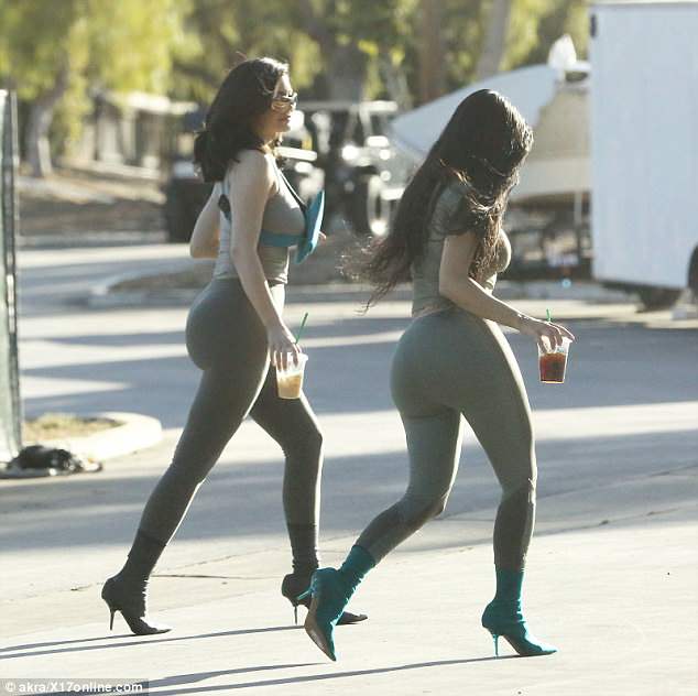 وبدت نجمتا تلفزيون الواقع "كيم كارداشيان" وشقيقتها الصغرى "كايلي جينر" نسخة طبق الأصل أثناء تجولهما في شوارع مدينة " كالاباساس" بولاية كاليفورنيا يوم أمس الإثنين، حيث استعرضت الشقيقتين منحنيات جسدهما بذات الإطلالة تقريبًا خلال جلسة تصوير تابعة لمجموعة أزياء مغني الراب "كانييه ويست".