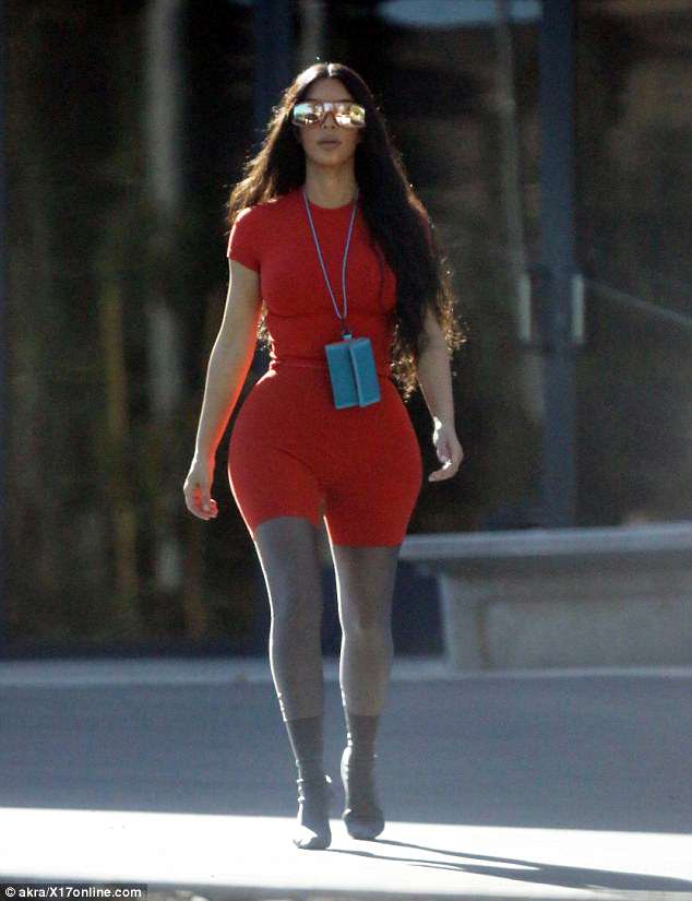 من جهة أخرى، ارتدت "كيم" ملابس رمادية ضيقة، وانتعلت حذاء ذو كعب عالٍ وياقة عالية باللون الأزرق، واعتمرت ذات النظارة الشمسية التي اختارتها شقيقتها. كما تألقت في زي آخر باللون الأحمر والعديد من الأزياء الأخرى.