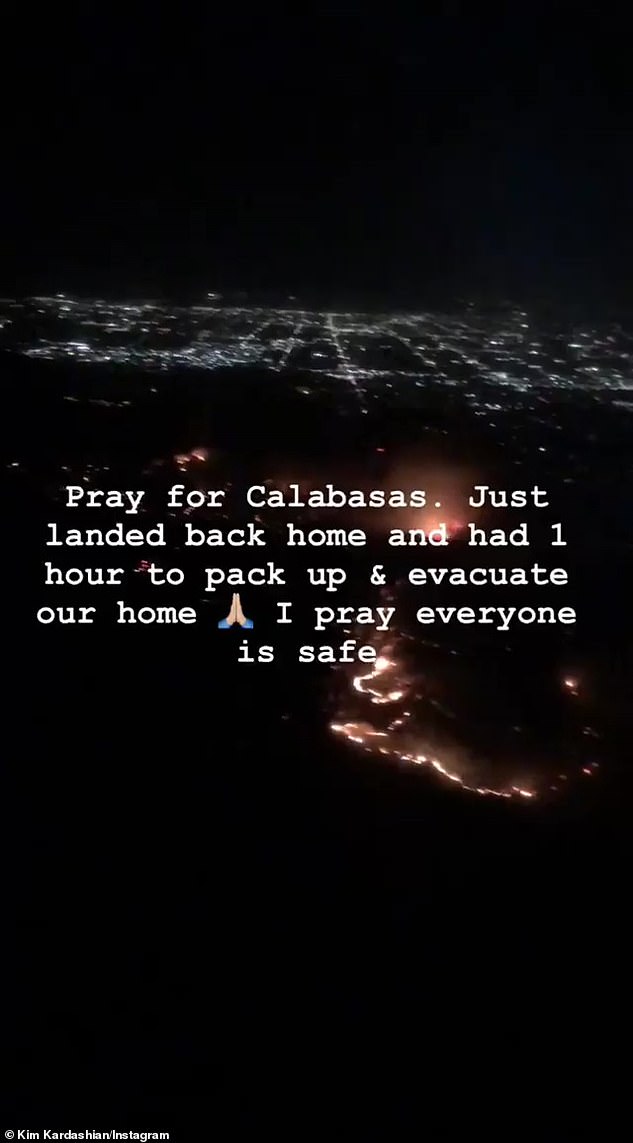 غادرت كيم كارداشيان كاليفورنيا بطائرتها الخّاصة هربًا من حرائق وولسلي، واصطحبت معها جميع أفراد عائلتها، وهم زوجها كانيه ويست وأطفالها الثلاثة نورث وسانت وشيكاغو، كما نشرت فيديو عبر حسابها في إنستغرام من الطّائرة التي كانت تُحلّق فوق المناطق المنكوبة بالحرائق، وعلّقت قائلةً: "بعد أن وصلت طائرتنا إلى مدينتنا، تمّ تبليغنا بأننا نمتلك ساعةً واحدة فقط لحزم أمتعتنا وإخلاء المنزل. دعواتي للجميع بالأمان".