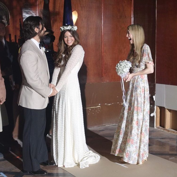 واتَّخذ حفل الزفاف الطابع البوهيمي ابتداءً من الديكورات الجميلة ونهاية بإطلالة العروس، فبدلًا من فستان زفاف أبيض اللون كما هو متعارف عليه، اختارت النجمة، البالغة من العمر 34 عامًا، فستان كلاسيكي باللون الوردي من توقيع دار الازياء الأمريكية " رودارتيه".