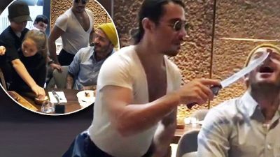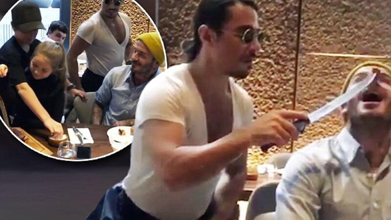 حضر "ديفيد بيكهام" برفقة زوجته مصممة الأزياء "فيكتوريا بيكهام"، وأولاده جميعهم؛ بروكلين، وروميو، وكروز، وابنته هاربر، حيث قاموا بتوثيق وجبتهم الشهية عبر موقع "انستغرام" في إحدى المقاطع يظهر الشيف "نصرت" يشحذ سكينه ، ثم يقوم بإطعام  نجم الكرة قطعة من شريحة اللحم مستخدمًا سكينه الحادة.
