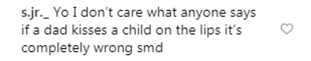 وكتب أحد المستخدمين: "إنها ابنتك، لماذا تثقبلها على شفتيها؟ إنها ليست زوجتك"، وكتبت أخرى: "أعتقد أن قُبلة على الخذ أفضل من الشفاه التي قد تبدو غريبة."