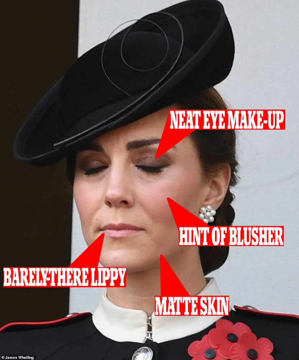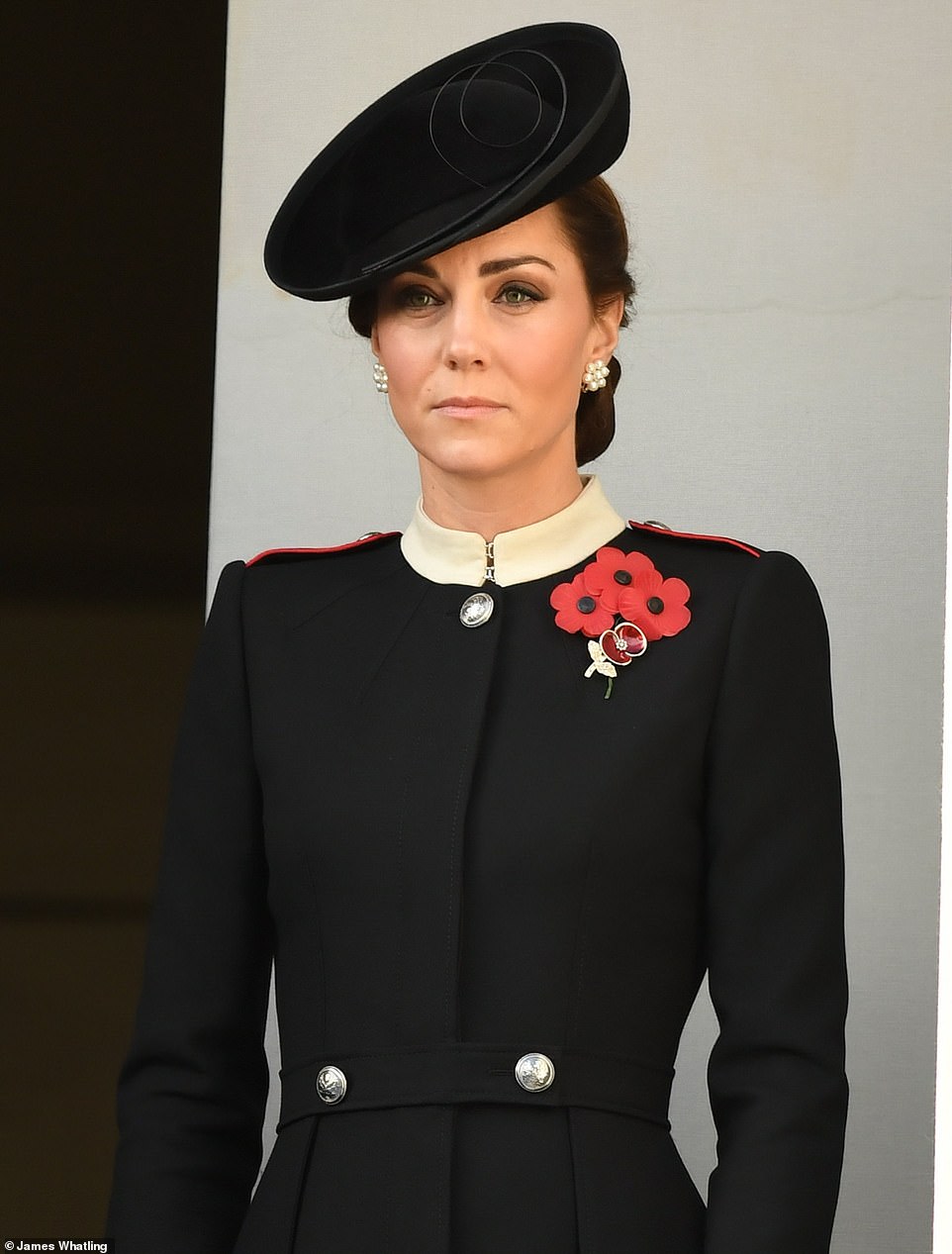 وعلى صعيد الإطلالة، تألَّقت "ماركل"، الحامل بطفلها الأول، معطف أسود طويل ذو تفاصيل أنيقة عند الأكتاف من توقيع دار الأزياء الفرنسية "جيفينشي"، وتزيَّنت بقبعة رأس سوداء. بينما اختارت "كيت" جاكيت أسود من توقيع مصممها المفضل "أليكساندر ماكوين" زُيِّنَ بثلاث من أزهار الخشخاش، كما اعتمرت قبعة رأس سوداء.