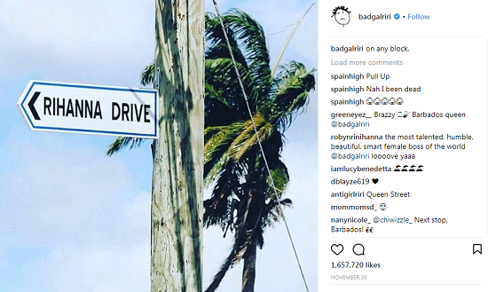 يذكر أن بلدية جزيرة باربادوس قد أطلقت اسم "ريهانا" على شارع "سانت مايكل"، وهو الشارع الذي قتل فيه ابن عمها، تيمنًا بها كونها التي ولدت هناك.