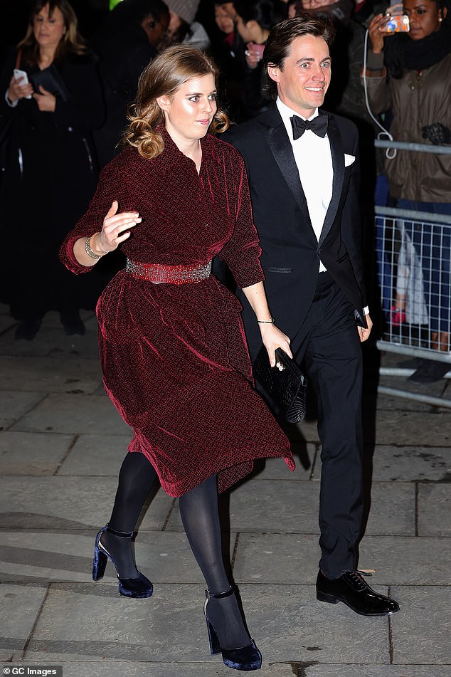 جاءت هذه الأنباء عندما ظهر الثنائي معًا على السجادة الحمراء، في معرض الصور الوطني بلندن، حيث تألقت بياتريس بفستان يحمل اللون النبيذي، اختارته من علامة Alaia، ووصل سعره إلى 5,660 استرليني، وانتعلت معه حذاء أسود اللون.