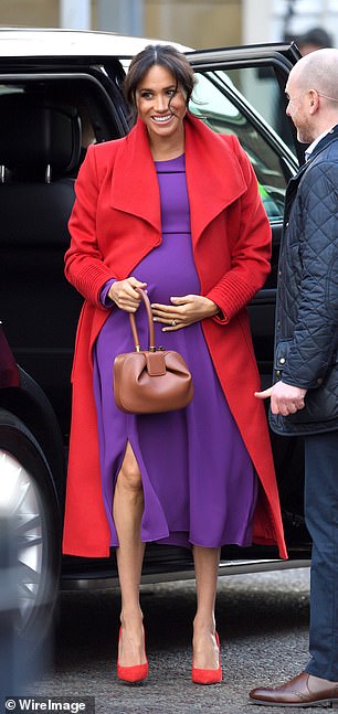3. إطلالتها ذات الألوان النابضة بالحياة المؤلفة من فستان أرجواني ومعطف أحمر اللون التي ارتدتها خلال جولتها في بيركينهيد الشهر الماضي.