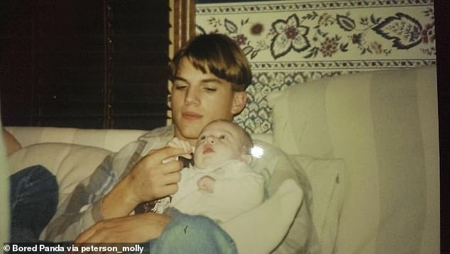 ونشرت أخرى صورة للنجم الأمريكي "آشتون كاتشر" يحمل أخيها الرضيع، حيث كان في ذلك الوقت حبيب خالتها.