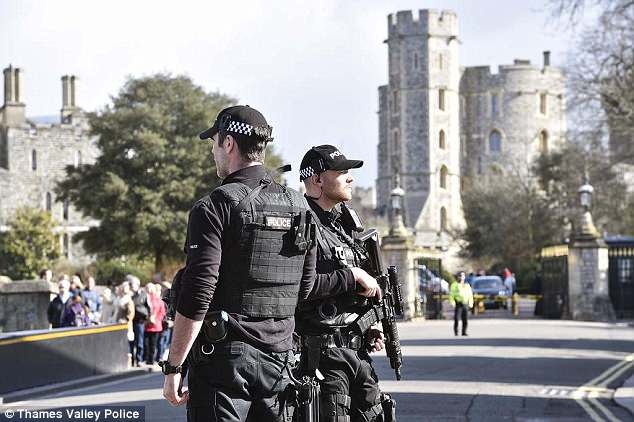 باشر الأمن البريطاني أعماله في تأمين المكان الذي سيحصل فيه الزفاف الملكي، فسيتواجد في موقع الحدث حواجز أمنية، وقنّاصين، ونقاط تفتيش تُشبه تلك الموجودة في المطارات للـ 100 ألف حاضر في الشوارع المُحيطة بالقلعة.