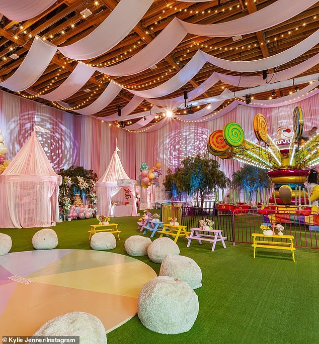 ومن المعروف عن عائلة كارداشيان هوسهم بإقامة الحفلات الباذخة التي تُكلّفهم مئات الآلاف من الدولارات، وكان هذا هو الحال بالنّسبة لعيد ميلاد ستورمي، حيث وضعت كايلي تفاصيل مجنونة داخل مكان الحفل، بدأتها بتزيين المدخل ببالون ضخم مُنتفخ على شكل ابنتها ستورمي، فيما مثّل فم الطفلة باب المدخل.